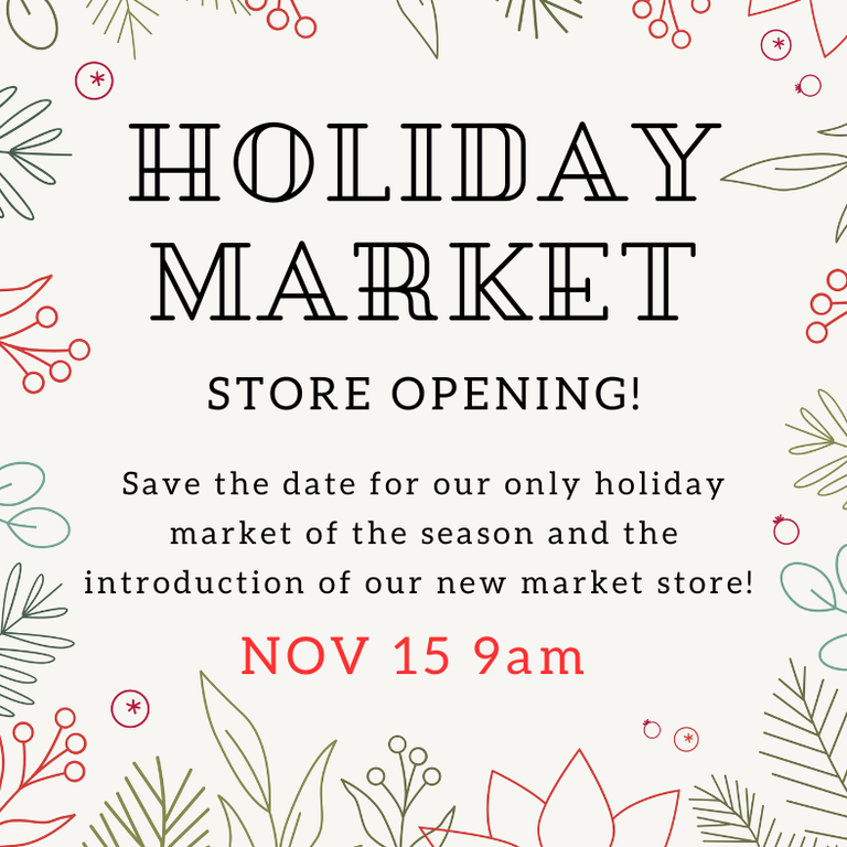 We’re not done yet — mark your calendars for our Holiday Market and Grand Introduction of our New Store on November 15! 🎄